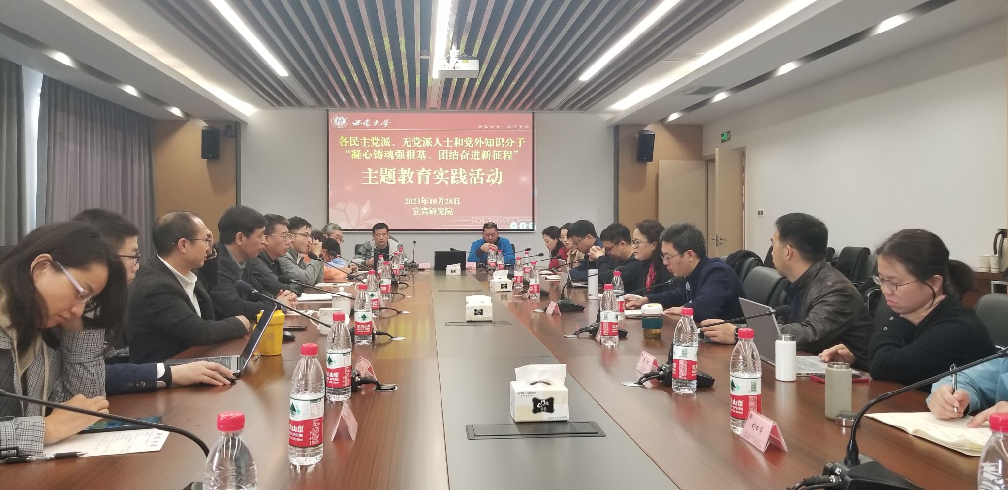 为深入学习贯彻习近平总书记关于做好新时代党的统一战线工作的重要思想,加强党外知识分子思想政治引领,推进落实统战年度工作任务,10月27至28日,学校组织各民主党派基层组织和统战团体负责人赴宜宾开展“凝心铸魂强根基、团结奋进新征程”主题教育实践活动。学校党委副书记潘洵出席活动……