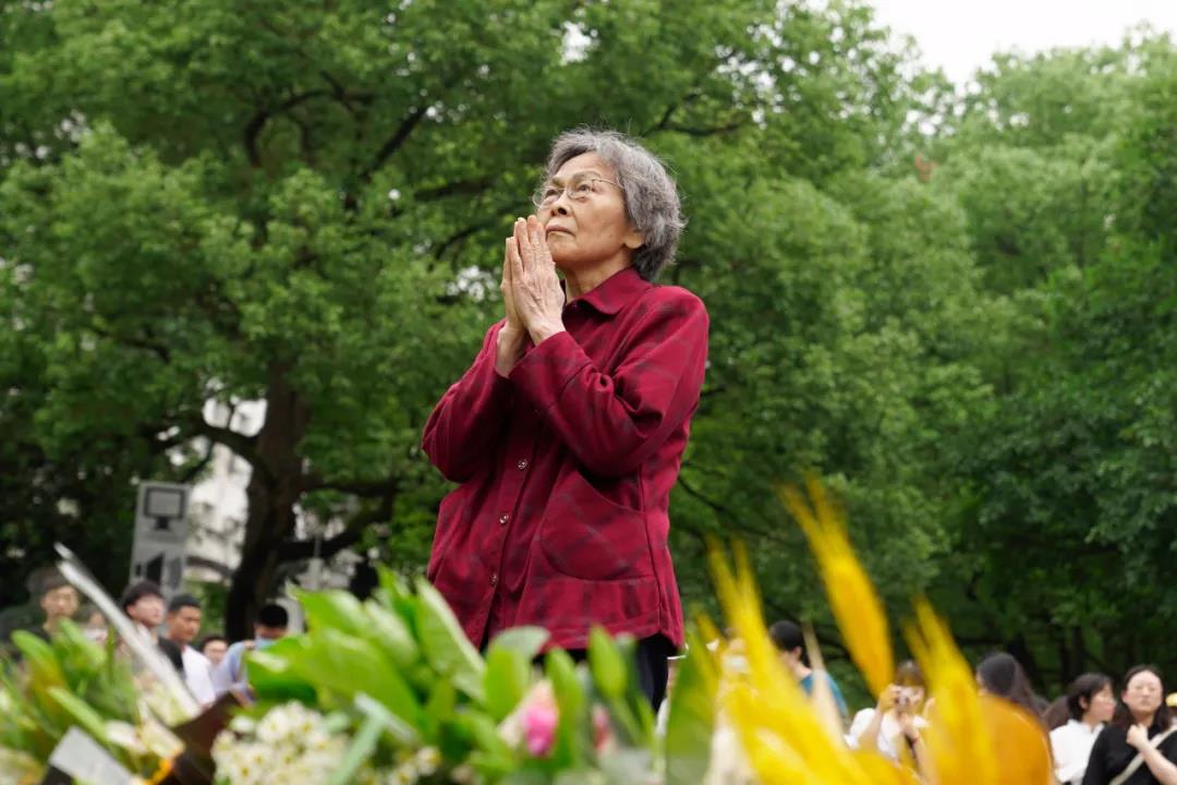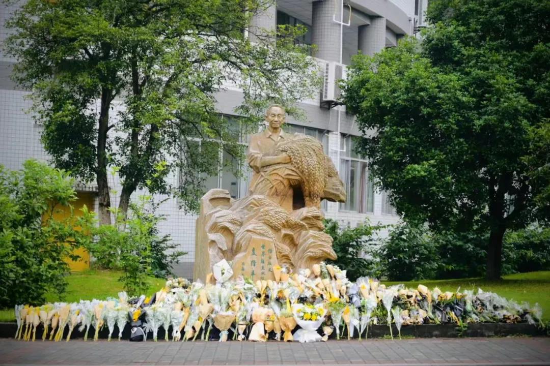 学校师生、校友自发到袁隆平院士雕像前悼念:
