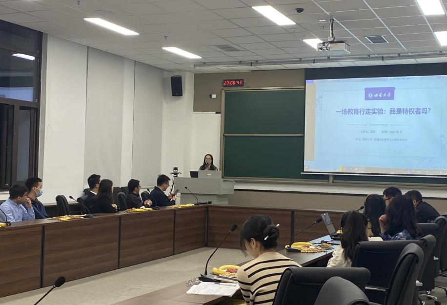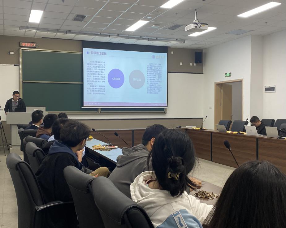 晚风习习、华灯初上,主题班会在轻松欢快的“听音传球”小游戏中拉开序幕。随着音乐的起停,现场师生分别进行了自我介绍。不同地域、不同口音、不同专业的师生在这一刻相识相知,增进了解,大家谈笑风生、其乐融融。