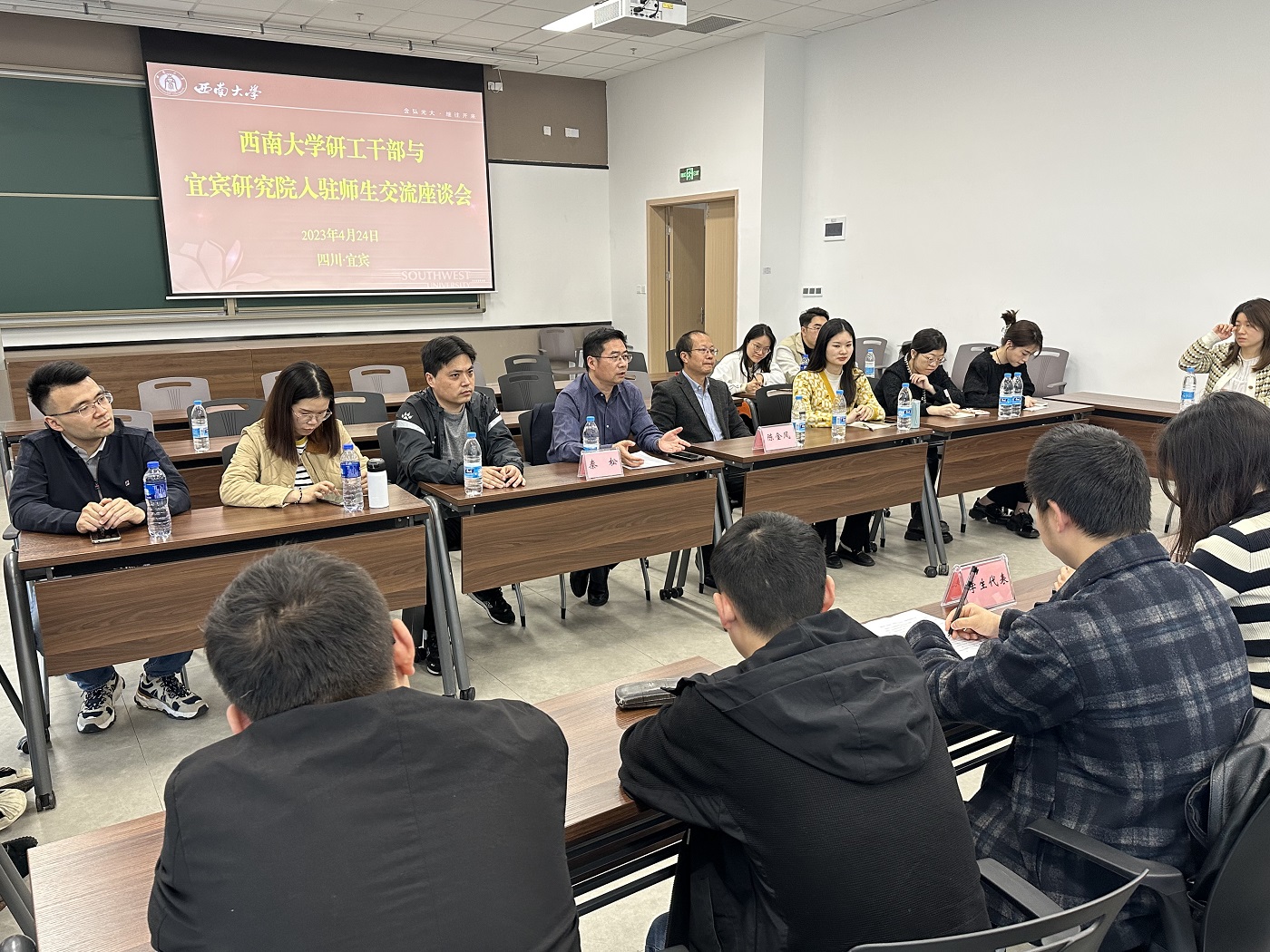 24日,在宜宾研究院负责人的带领下,调研团参观了研究院教学办公区域和师生生活区域,前往学生公寓走访慰问首批入驻研究生。随后,调研团一行与宜宾研究院开展师生座谈交流。会上,党委研究生工作部部长秦松谈到,宜宾研究院是学校为助力成渝地区双城经济圈建设,服务地方经济社会发展而设立的校外教学科研基地,希望同学们珍惜学习机会,充分利用校地资源,在研究院实现思想上自我提高、学习上自我督促、生活上自我管理。